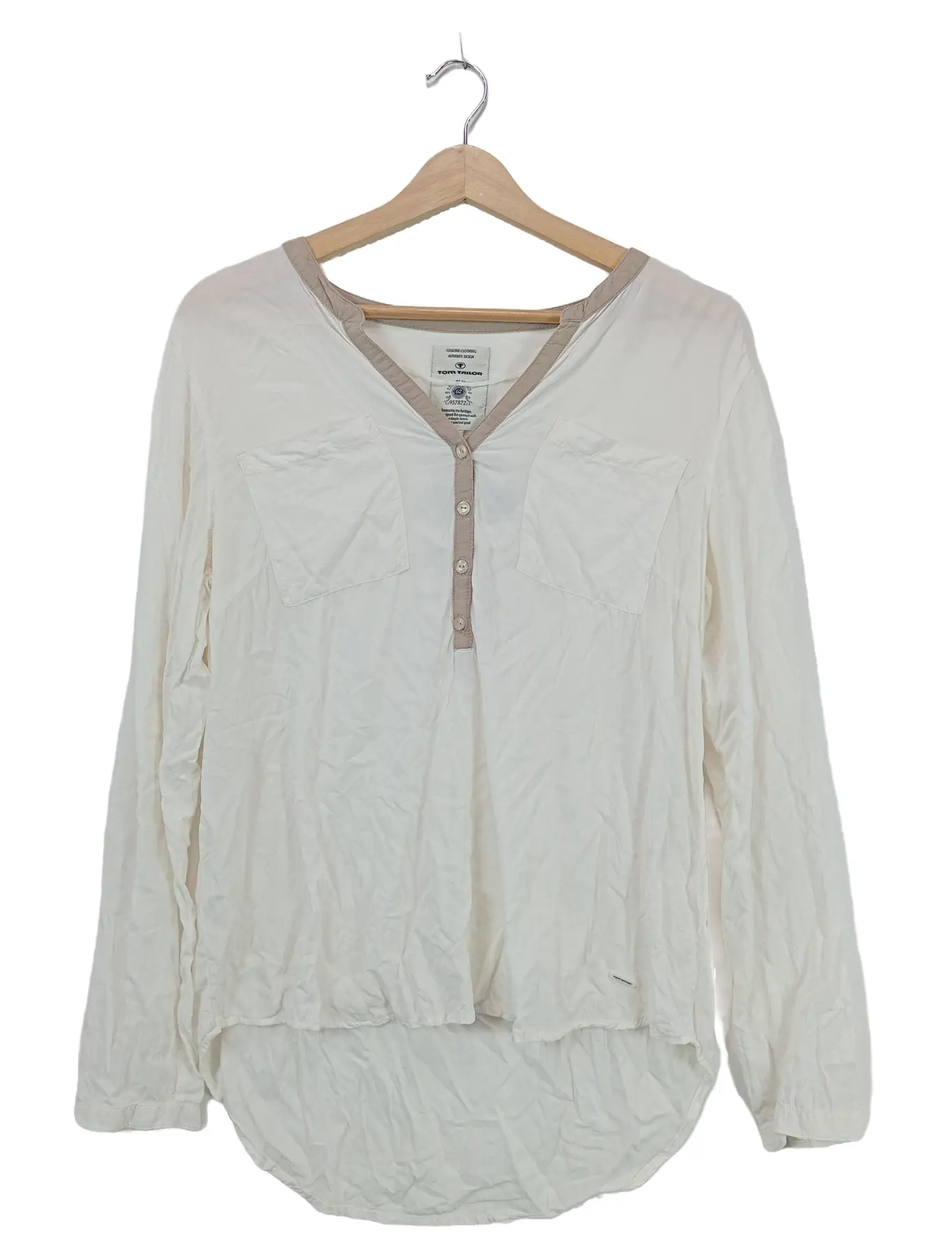TOM TAILOR Damen Bluse Langarm Weiß Gr. 40 Casual V-Ausschnitt Knopfleiste