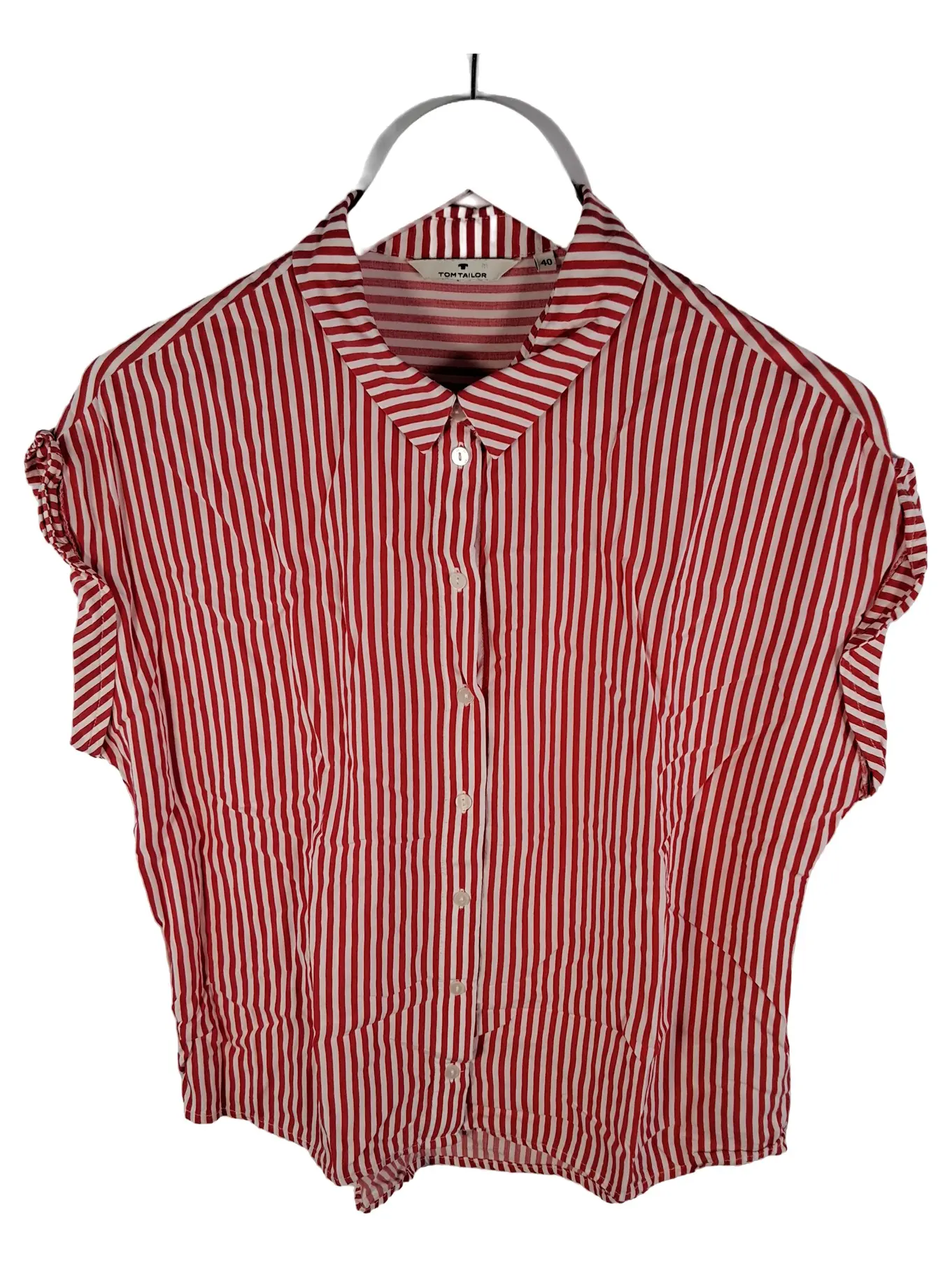 TOM TAILOR Bluse Damen Gr. 40 Rot Weiß Gestreift Kurzarm Viskose