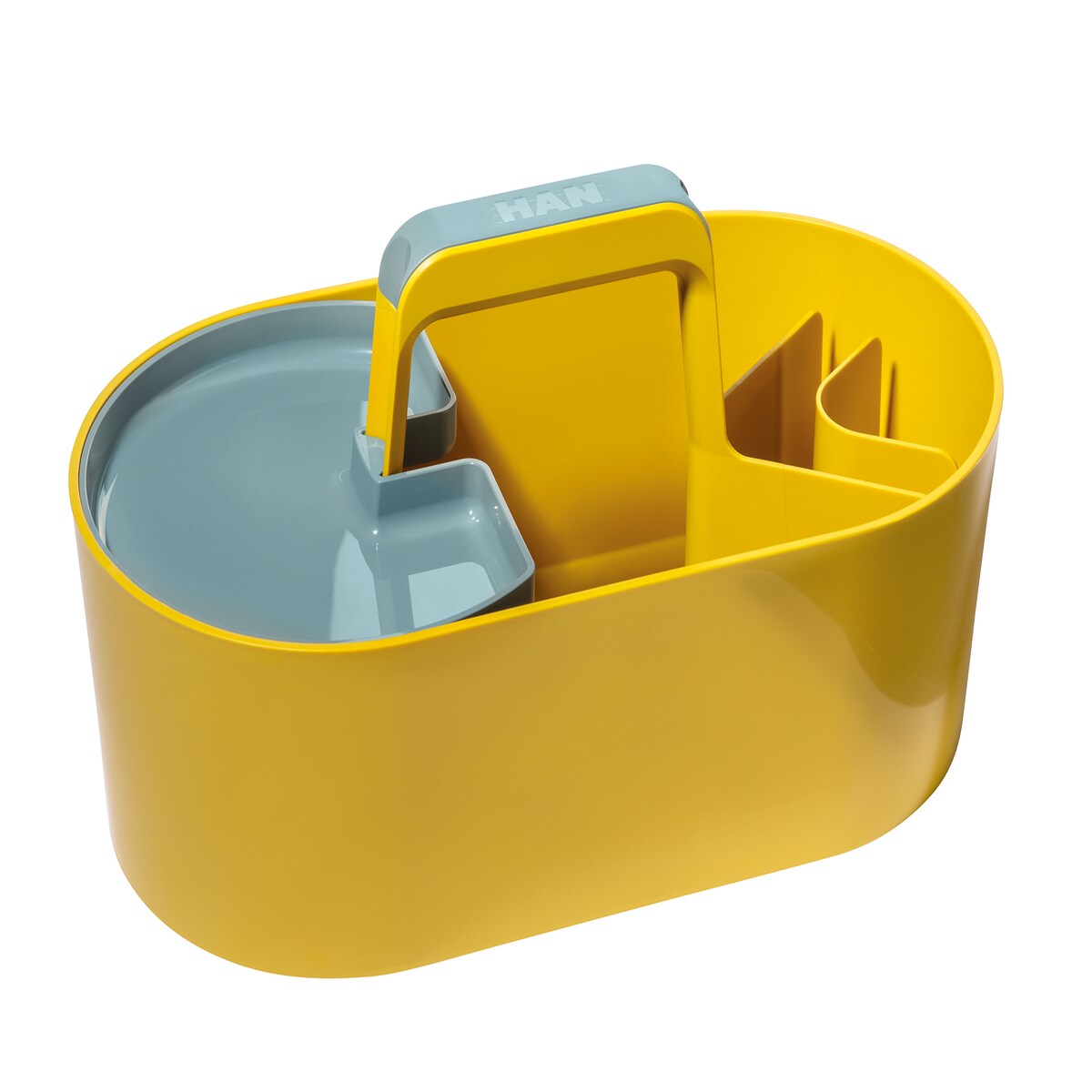 Toolbox LOFT Kunststoffkorb mit Griff, 4 Fächer, Schreibtischkorb, Reinigungskorb, Bastelkorb, Aufbewahrung für Utensilien, Grün