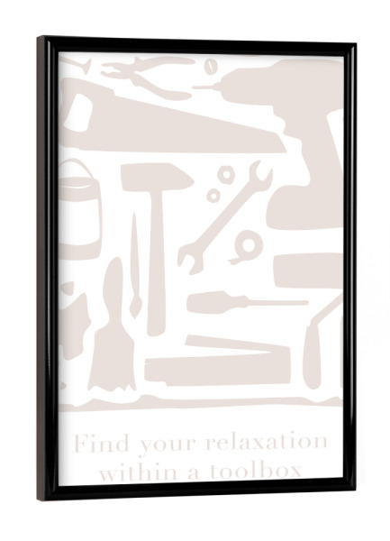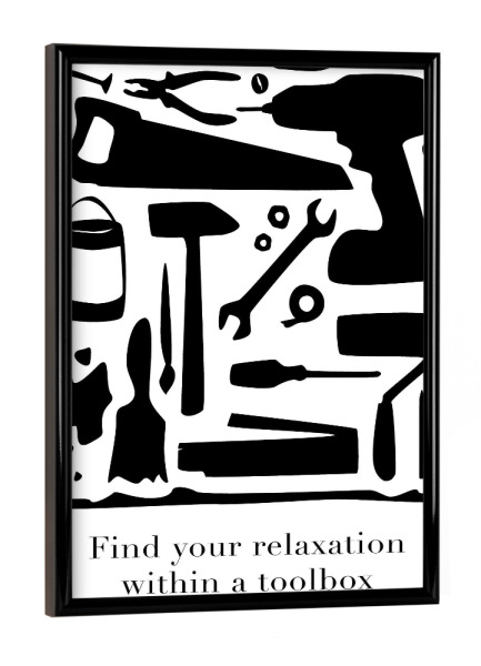 Poster mit schwarzem Rahmen "Relaxation within a toolbox" artboxONE - Typografie,Männer