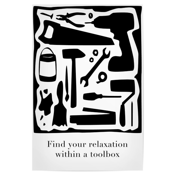 Poster "Relaxation within a toolbox" artboxONE - Typografie,Männer - Werkzeug,Werkzeugkasten,Beige,Typo,Typografie,Entspannung,Relaxation,Toolbox