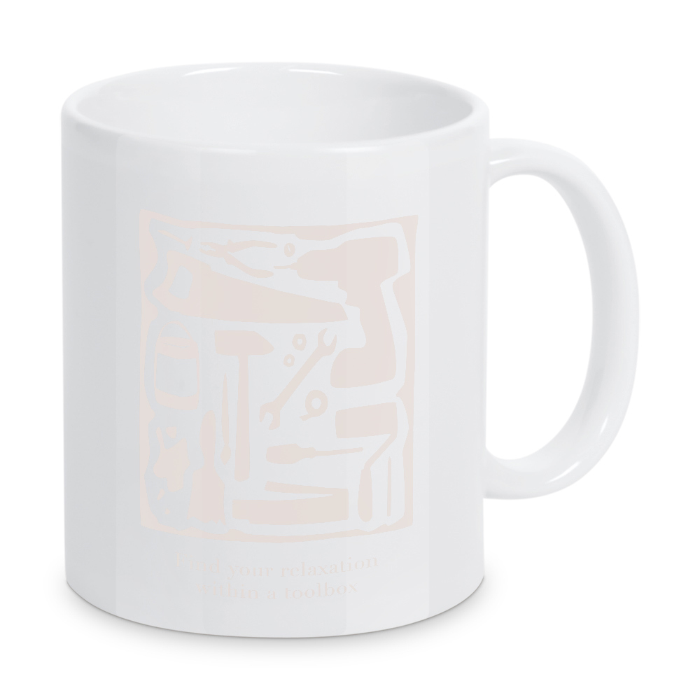 Tasse "Relaxation within a toolbox" artboxONE - Typografie,Männer - Werkzeug,Werkzeugkasten,Beige,Typo,Typografie,Entspannung,Relaxation,Toolbox