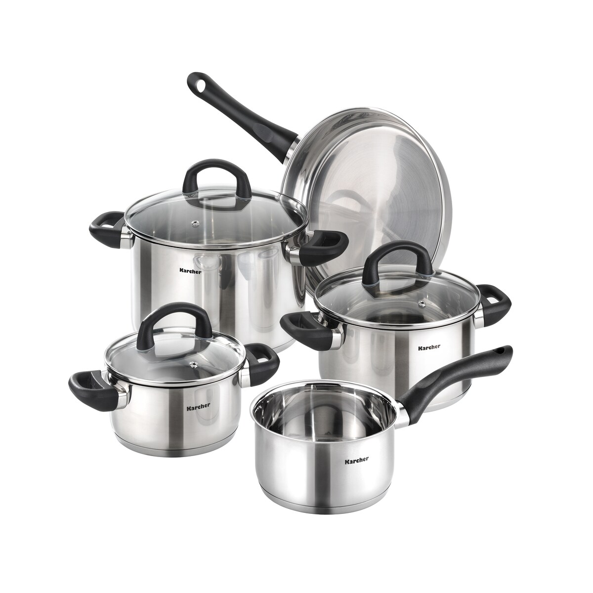 Kärcher Karcher Topfset Mia aus Edelstahl, Induktion, Töpfe mit Glasdeckel / Pfanne / Stielkasserolle, 5-teilig