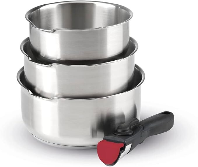 Topfset aus Edelstahl mit abnehmbarem Griff