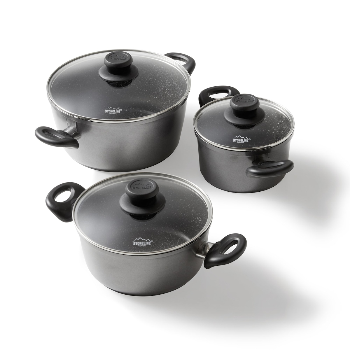STONELINE Topfset 6-teilig mit Glasdeckel, beschichtete Aluguss Töpfe Backofen & Induktion geeignet