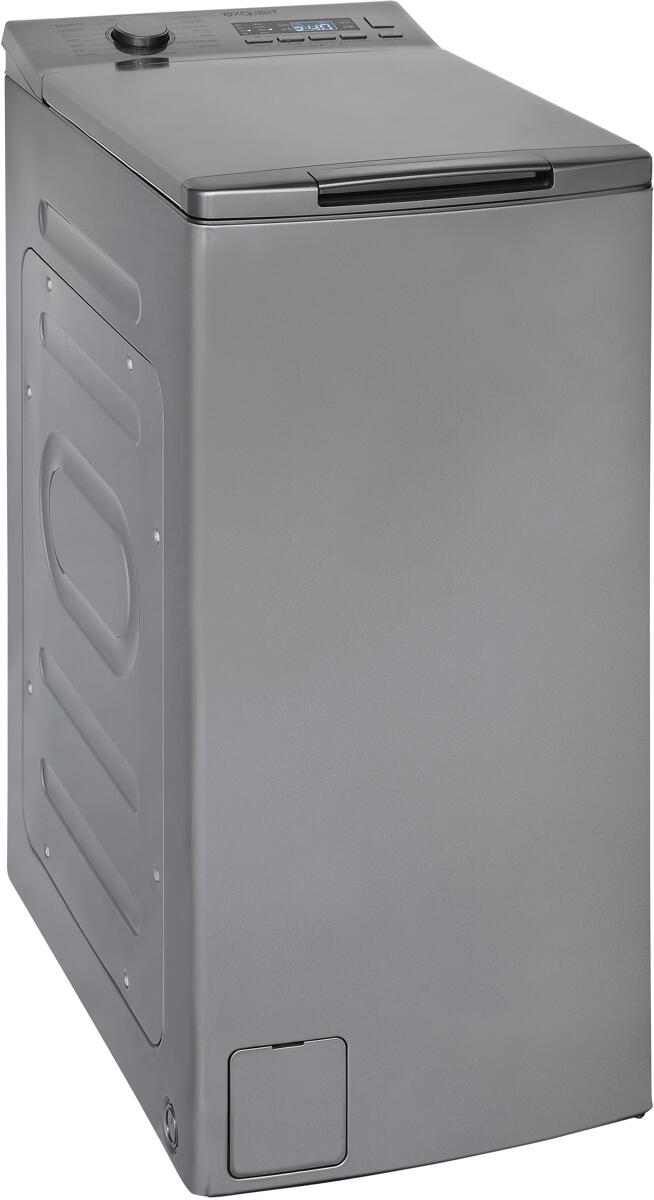 Exquisit Waschmaschine 7,5kg, Toplader, Waschmaschine schmal, Energieklasse A, 1200 U/Min, Startzeitvorwahl, Kurzprogramm, LTO51207-030A silber-dunkel