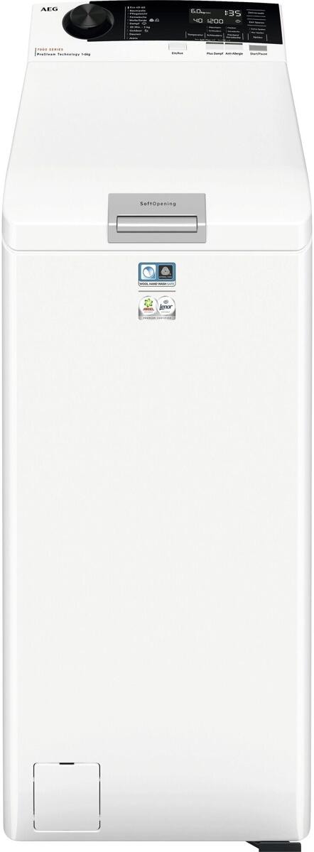 AEG LTR7E70268 7000 ProSteam 6kg Toplader Waschmaschine, 40 cm breit, 1200 U/Min, ProSteam, ProSense, SoftOpening-System, Nachlegefunktion, weiß (9131