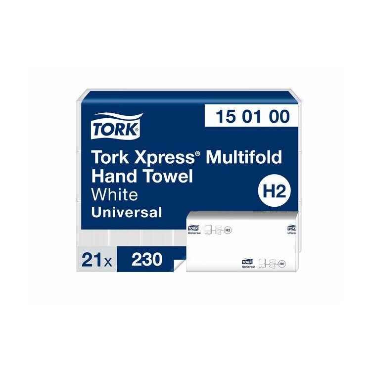 Tork Xpress Multifold-Handtücher Weiß H2, Universal-Qualität, kosteneffizient, 21 × 230 Tücher, 150100