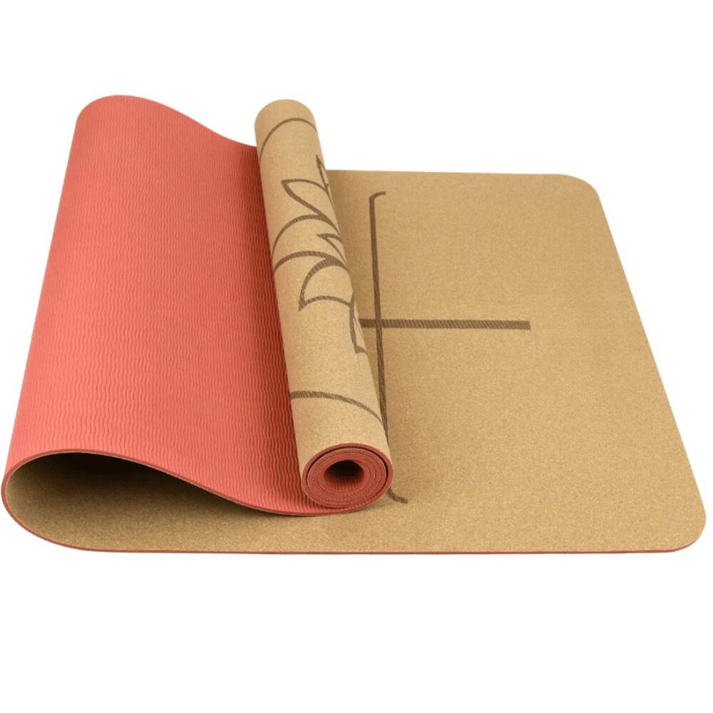 DELUKE Yogamatte Kork rutschfest EMMI [Mit Tragegurt] 4mm Dicke | Yoga Matte Fitnessmatte Trainingsmatte TPE Gymnastikmatte für Sport , Rot
