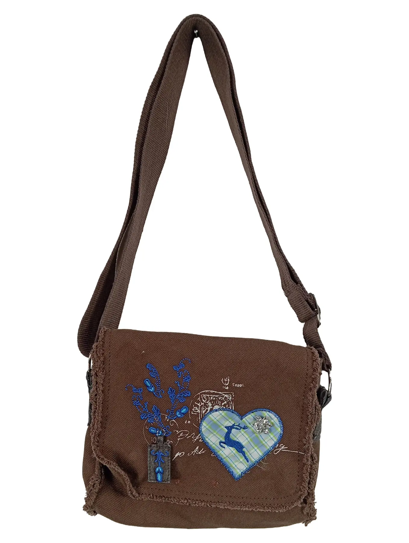 Umhänge Trachtentasche mit Applikation Herz Stickerei und Edelweiß