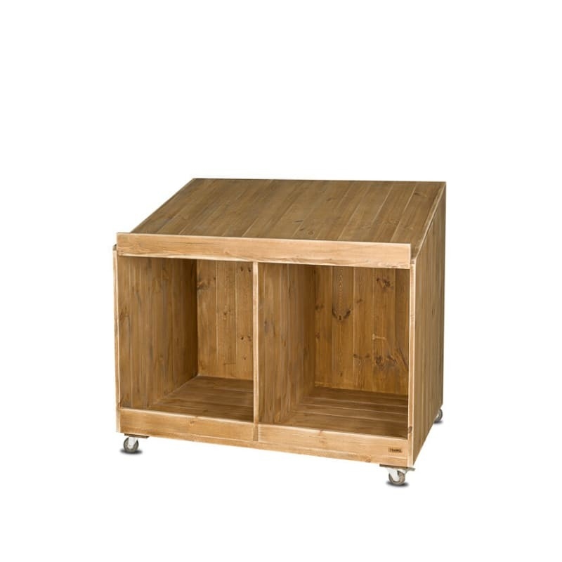 TRADIS Primeur-Display auf Rollen, 2 Fächer, Massivholz