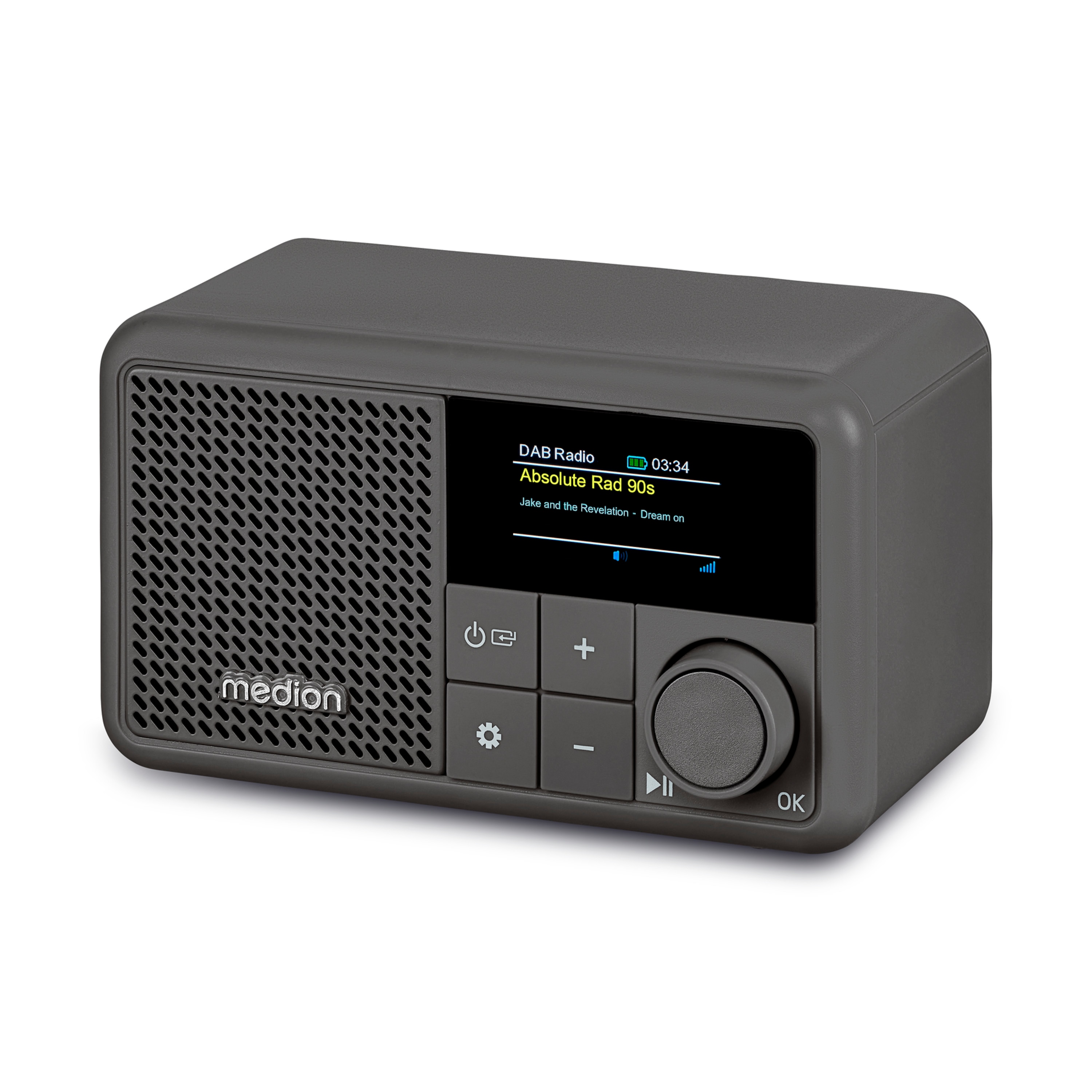 MEDION S66822 Tragbares DAB+ Radio grau, Farb-TFT Display 3,73 cm (1,47''), DAB+/UKW-Radio (je 40 Senderspeicher), Bluetooth 5.3, integrierter Akku,