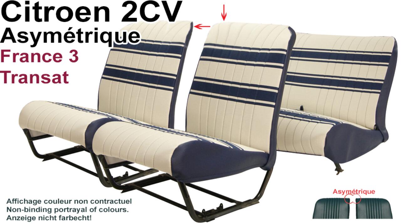 Sitzbezug 2CV (France 3 - Transat)) vorne + hinten. Asymmetrische Rückenlehnen. Stoff: weiß mit blauen Streifen