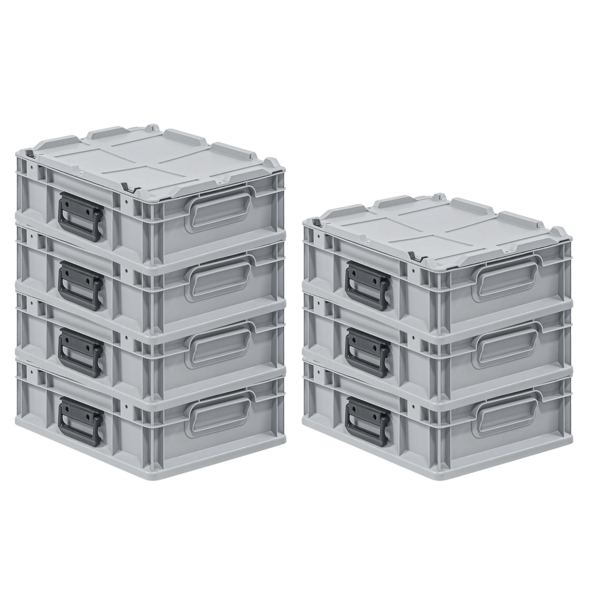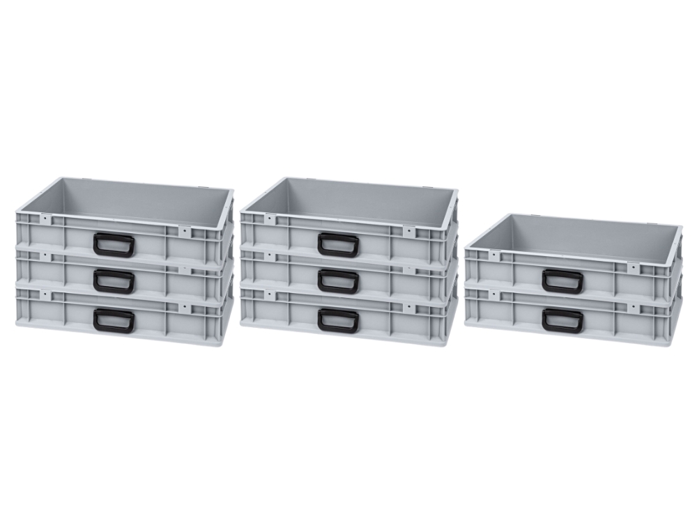 SuperSparSet 8x Eurobehälter mit offenem Griff und Scharnierdeckel | HxBxT 23,5x30x40cm | 22 Liter | Grau | Eurobox, Transportbox, Transportbehäl...