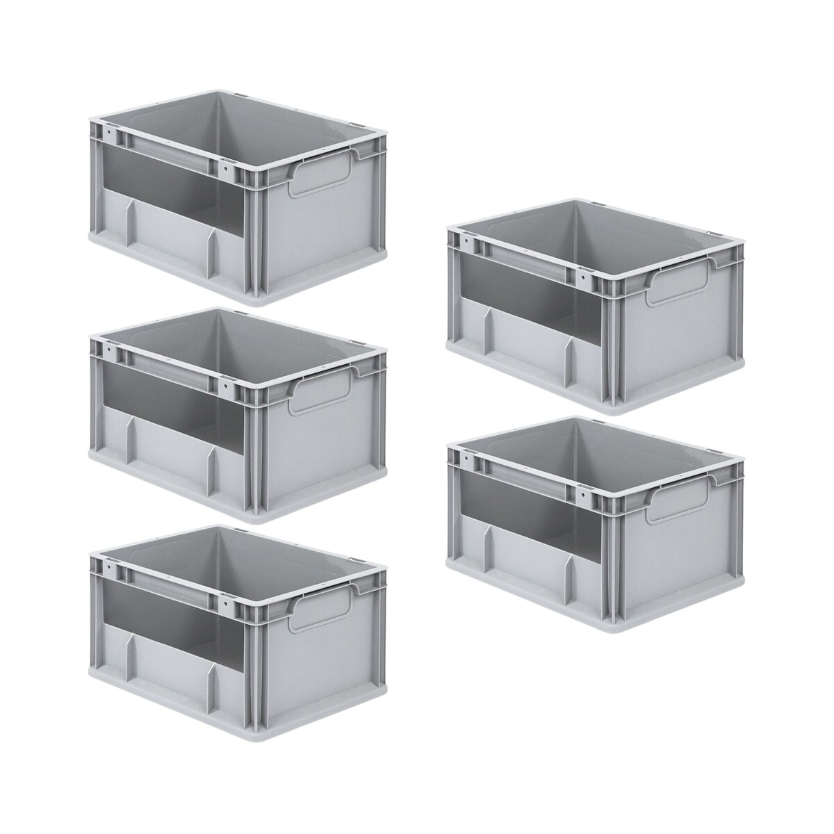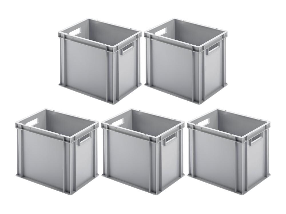 PROREGAL 5x Eurobehälter mit offenem Griff | HxBxT 32x30x40cm | 29 Liter | Grau | Eurobox, Transportbox, Transportbehälter, Stapelbehälter