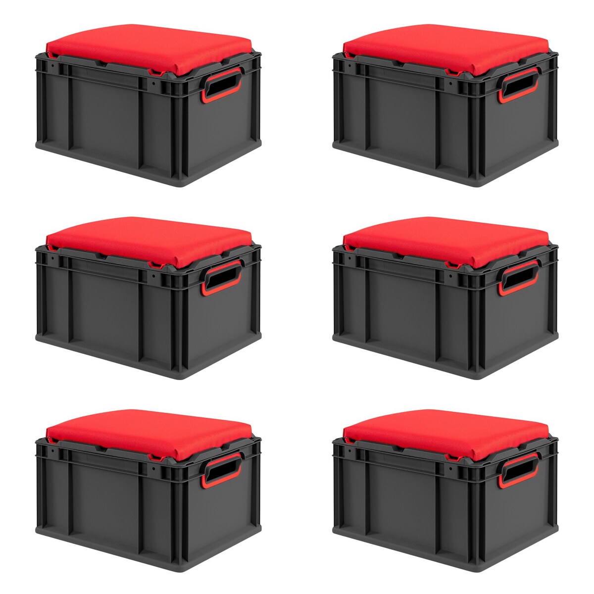 PROREGAL SparSet 6x Eurobox NextGen Seat Box Rot, HxBxT 26,5x30x40cm, 20 Liter, Griffe offen, Schwarz, Eurobehälter, Sitzbox, Transportbox