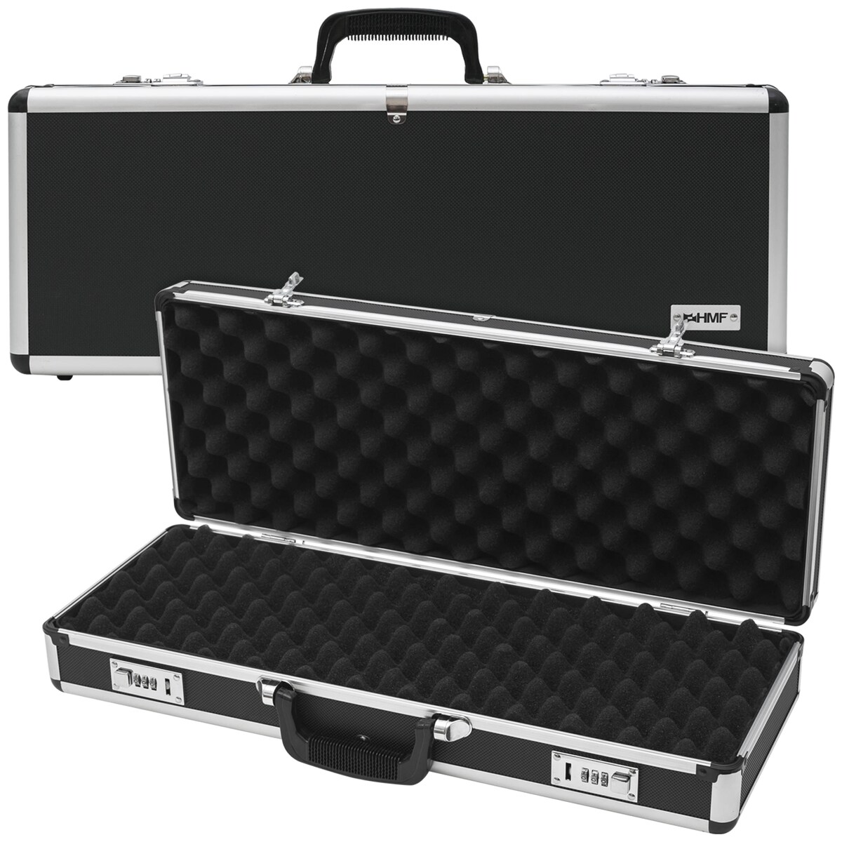 HMF Alu Transportkoffer für Gewehre mit Rasterschaumstoff, 117 x 36 x 12 cm, Schwarz