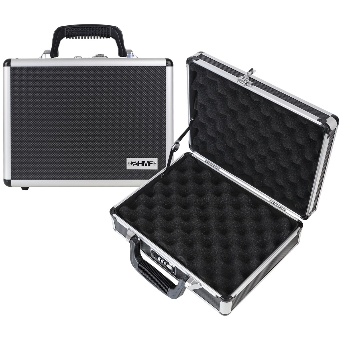 HMF Alu Transportkoffer für Pistolen mit Zahlenschloss, 42 x 26 x 12 cm, Schwarz
