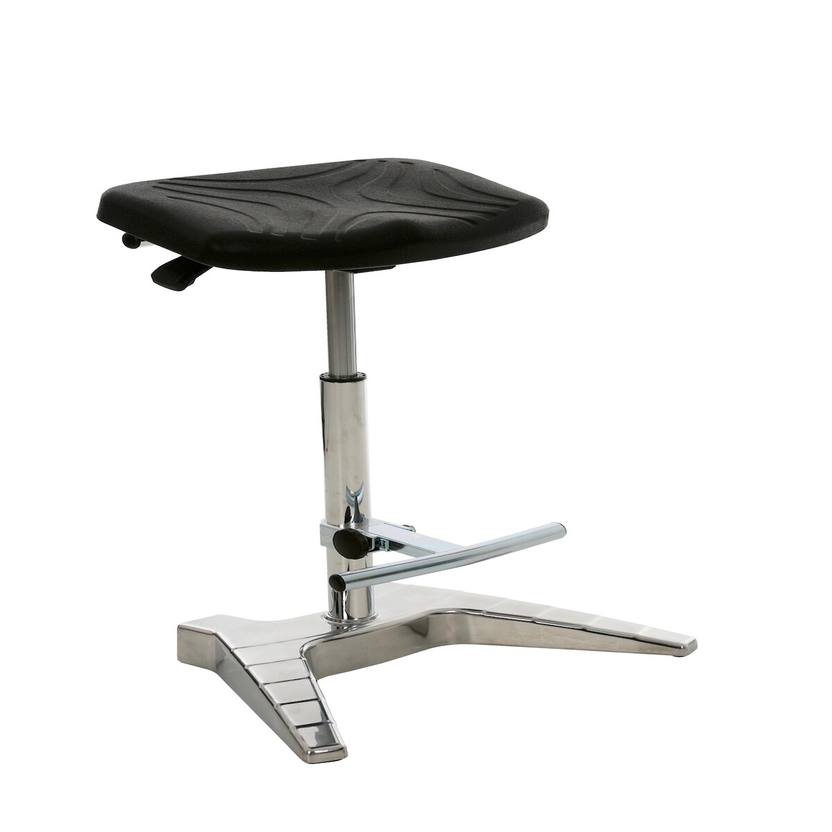 Klappbare Stehhilfe Plus | Sitzhöhe 65-85cm | Tragfähigkeit 100kg | Polyurethane-Sitz | mit Transportrollen | Schwarz/Schwarz