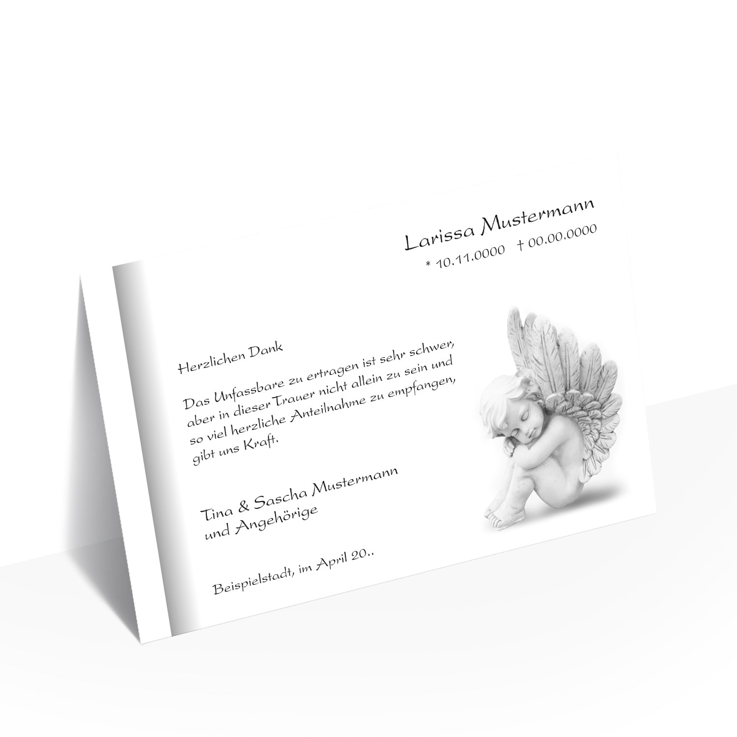 Danksagung Trauer Sitzender Engel, mit persönlichen Worten gestalten