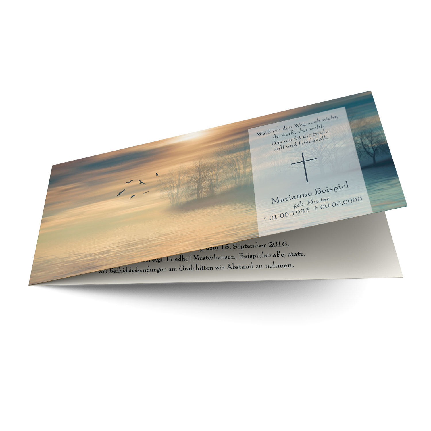 Trauerkarte Nebellandschaft, zur Beerdigung selbst online erstellen