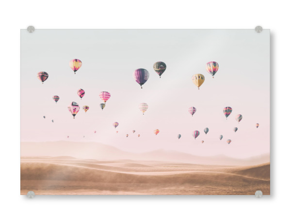 Acrylglasbild "Travel the world" artboxONE - Reise - Air balloons,Hot air balloons,Desert,Boho,Travel,Photography,Pink,Baby,Kids,Nursery