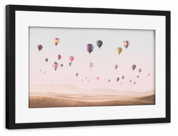 Poster mit Rahmen schwarz "Travel the world" artboxONE - Reise - Air balloons,Hot air balloons,Desert,Boho,Travel,Photography,Pink,Baby,Kids,Nursery