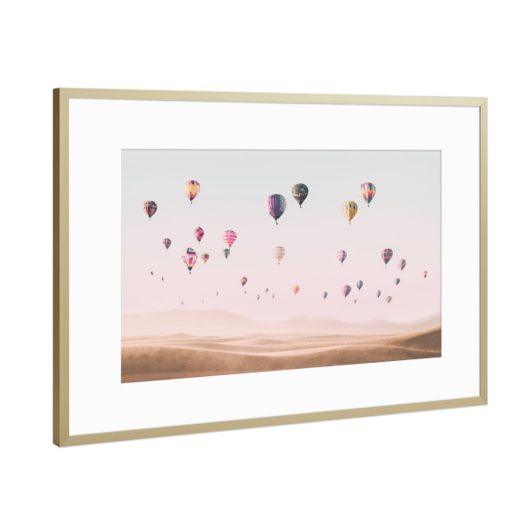 Poster mit Rahmen Gold "Travel the world" artboxONE - Reise - Air balloons,Hot air balloons,Desert,Boho,Travel,Photography,Pink,Baby,Kids,Nursery
