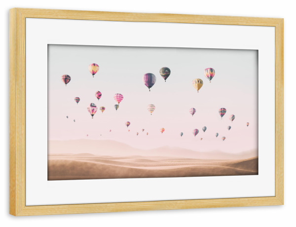 Poster mit Rahmen kiefer "Travel the world" artboxONE - Reise - Air balloons,Hot air balloons,Desert,Boho,Travel,Photography,Pink,Baby,Kids,Nursery