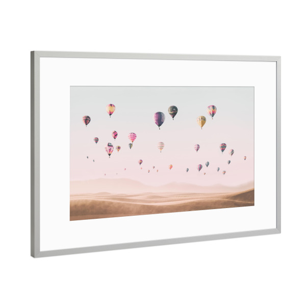 Poster mit Rahmen Silber "Travel the world" artboxONE - Reise - Air balloons,Hot air balloons,Desert,Boho,Travel,Photography,Pink,Baby,Kids,Nursery
