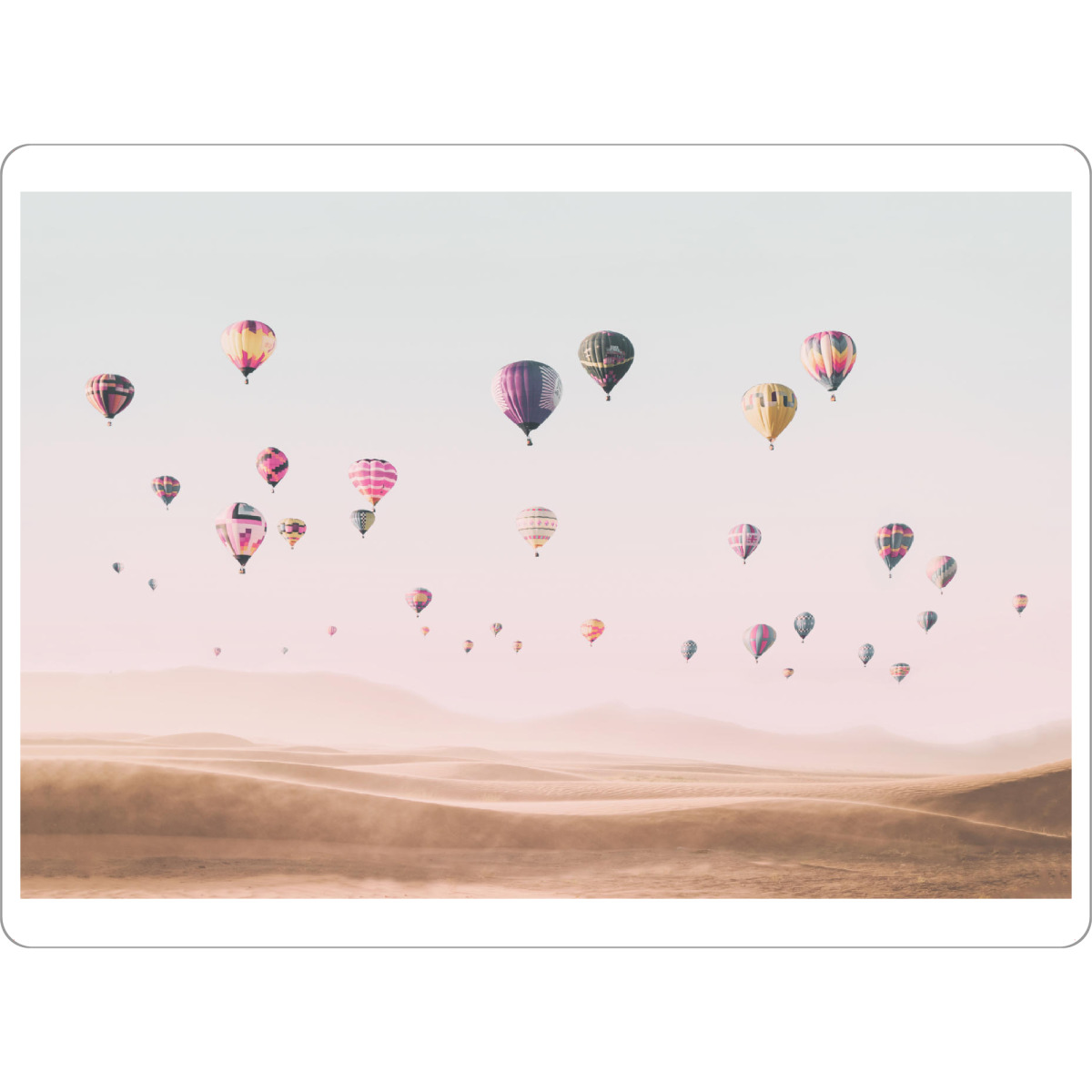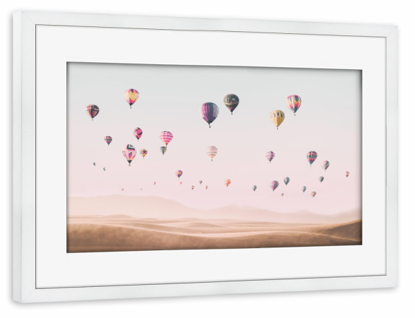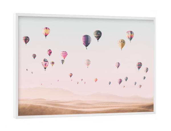 Poster mit weißem Rahmen "Travel the world" artboxONE - Reise - Air balloons,Hot air balloons,Desert,Boho,Travel,Photography,Pink,Baby,Kids,Nursery