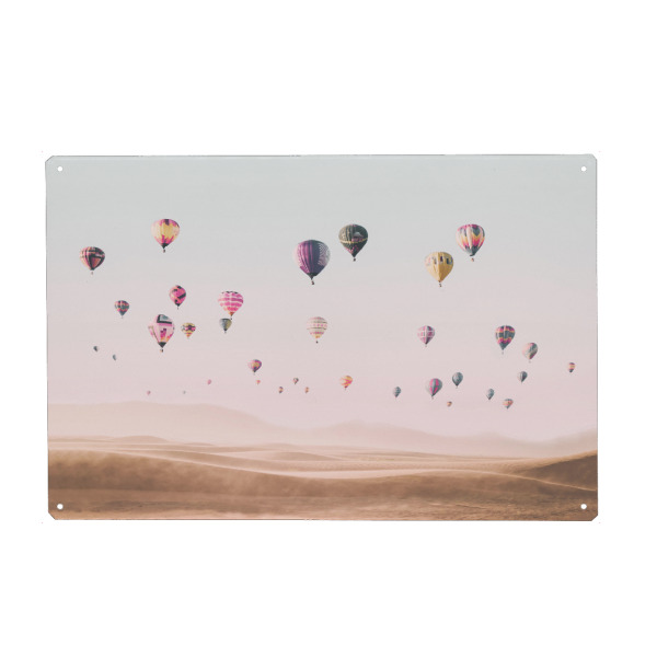 Metall Poster "Travel the world" artboxONE - Reise - Air balloons,Hot air balloons,Desert,Boho,Travel,Photography,Pink,Baby,Kids,Nursery