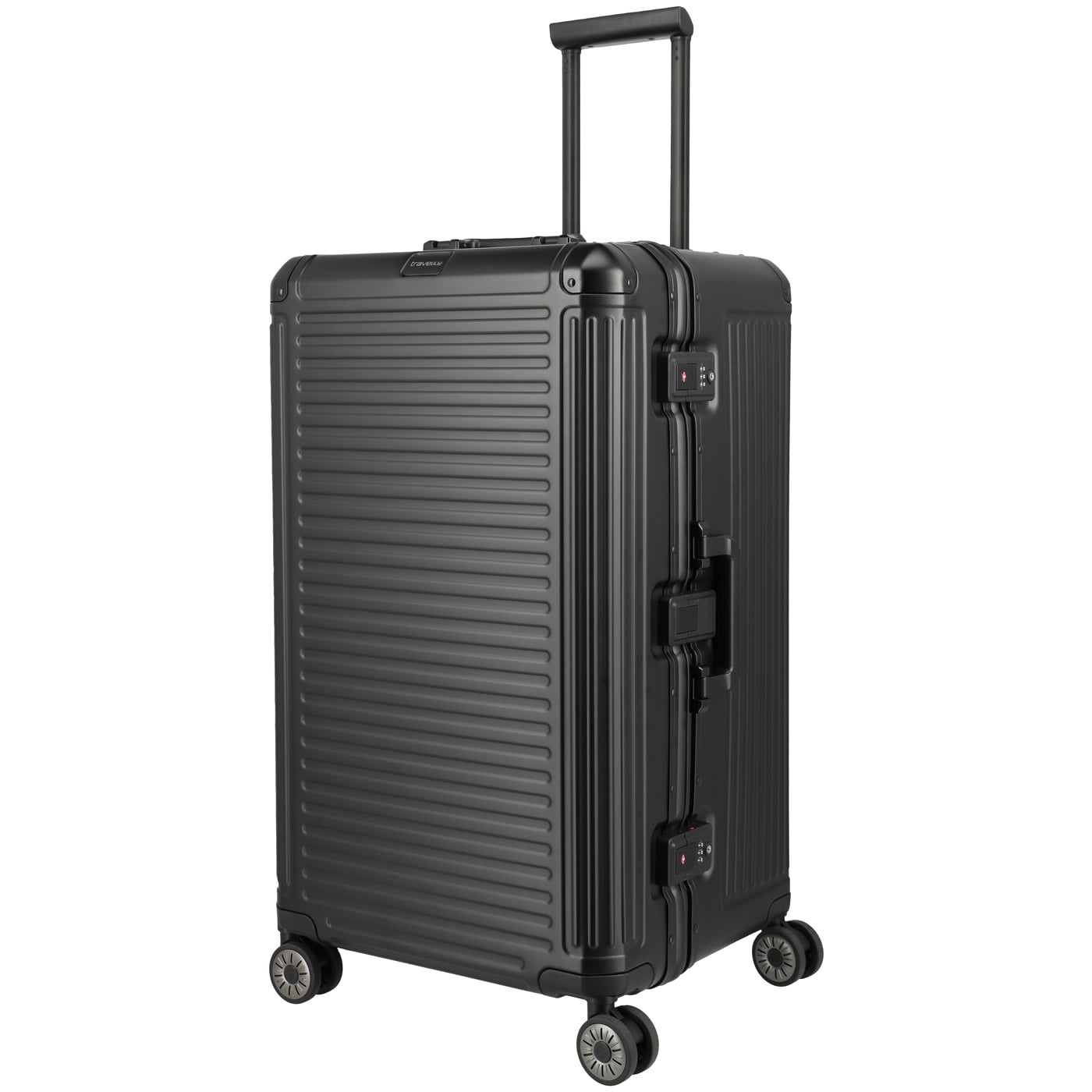 Travelite Trolley Next 4W Trunk L 76cm schwarz, 6,70kg leichter Aluminium Hartschalenkoffer, Koffer schwarz