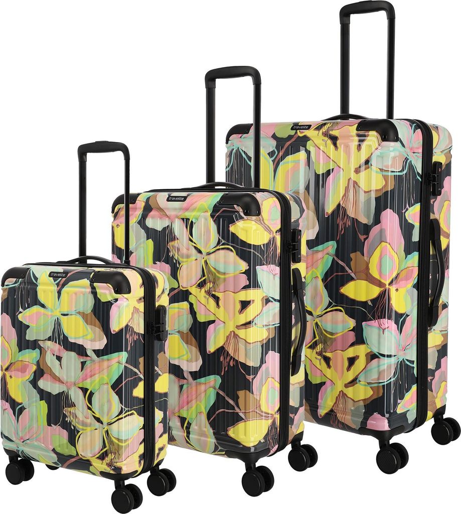 Travelite CRUISE Kofferset mit 4 Rollen Gr. L/M/S - Gelbe Orchidee