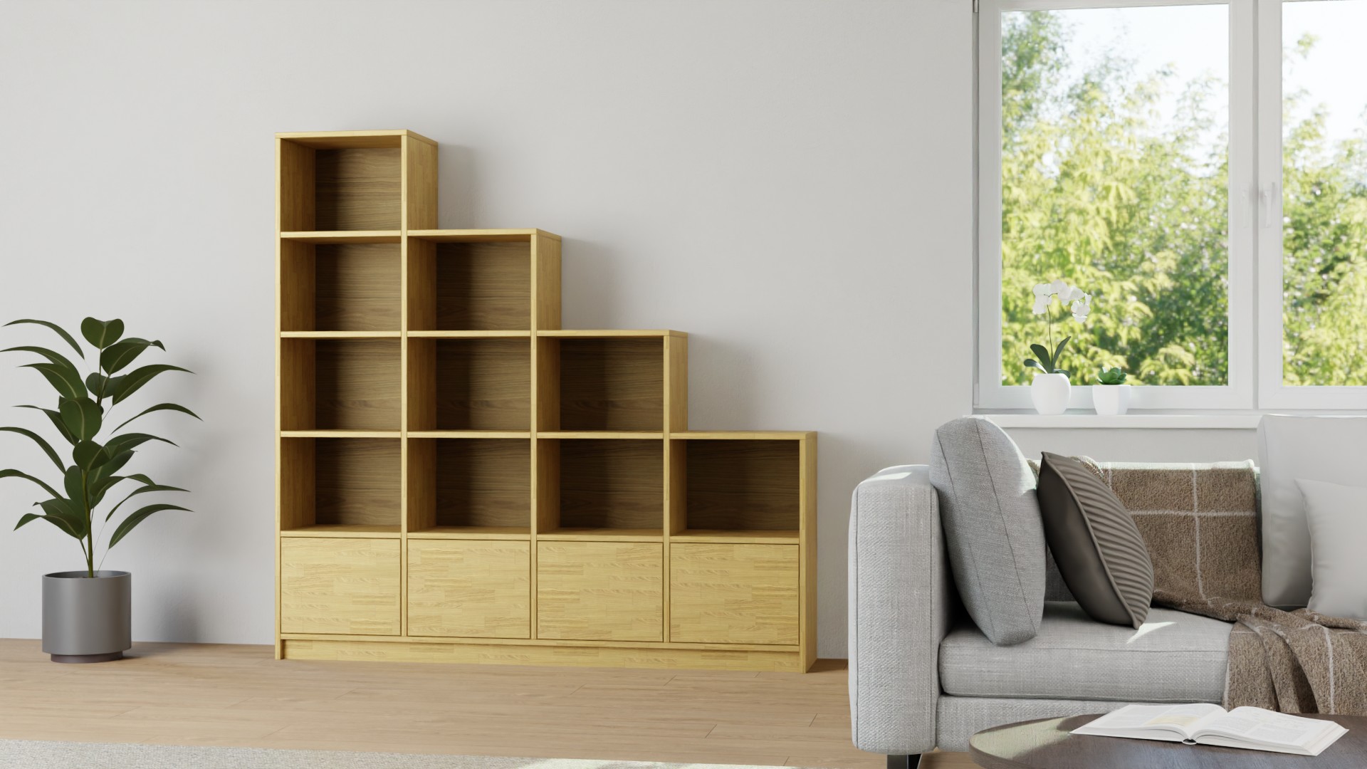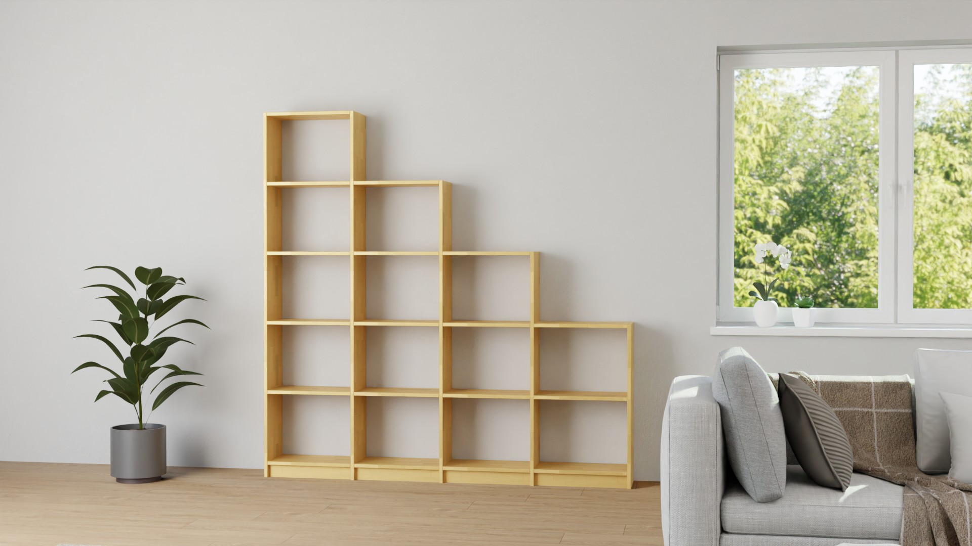 Großes Stufenregal nach Maß - Treppenregal mit vielen Optionen Buche