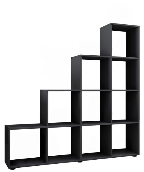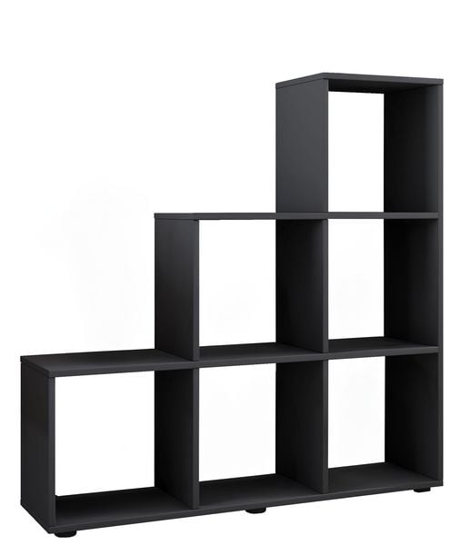 KOMTO Treppenregal Vexo, Raumteiler, Bücherregal mit 6 Fächern, 30 x 30 cm, Würfelregal, Anthrazit