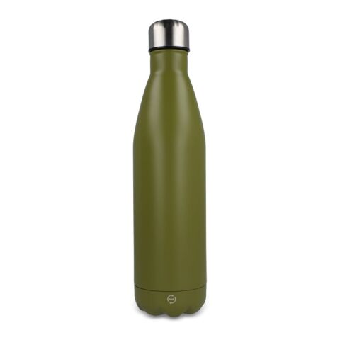Werbeartikel R-Swing 750 ml Trinkflasche aus recyceltem Edelstahl vakuumisoliert & auslaufsicher doppelwandig – olivgrün – mit Logo bedruckt