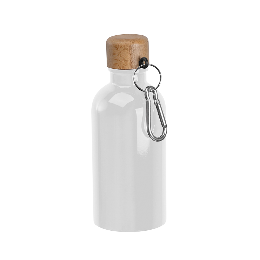 Werbeartikel Oregon 400 ml matte RCS-zertifizierte einwandige Trinkflasche aus recyceltem Edelstahl mit Karabinerhaken – weiß – mit Logo bedruckt