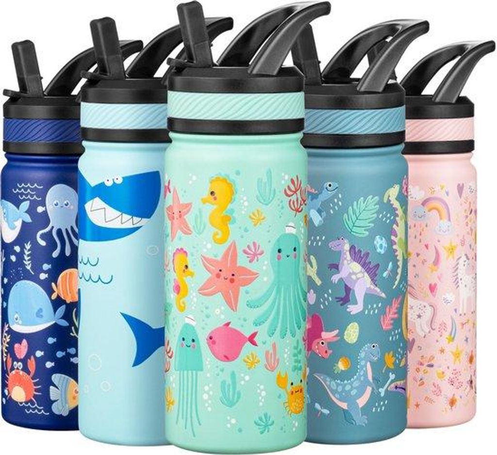 Trinkflasche für Kinder mit Strohhalm - Edelstahl, Isolierung, Auslaufsicher, 480 ml