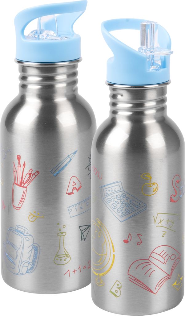 Back to school Edelstahl Trinkflasche - Flasche Metall Wasserflasche mit Strohhalm 500 ml