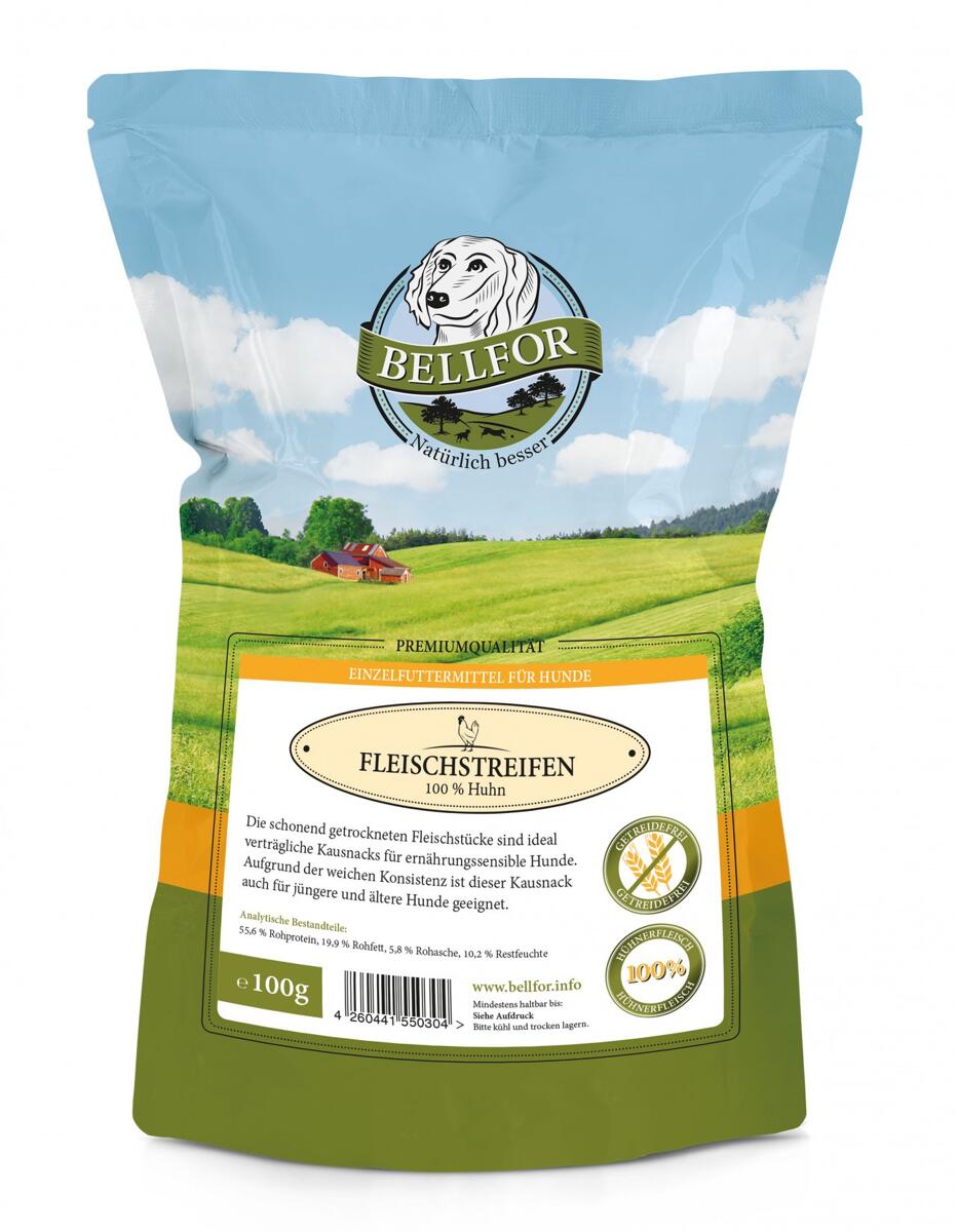 Bellfor Trockenfleisch | mit Huhn | 100 g getreidefreier Hundesnack