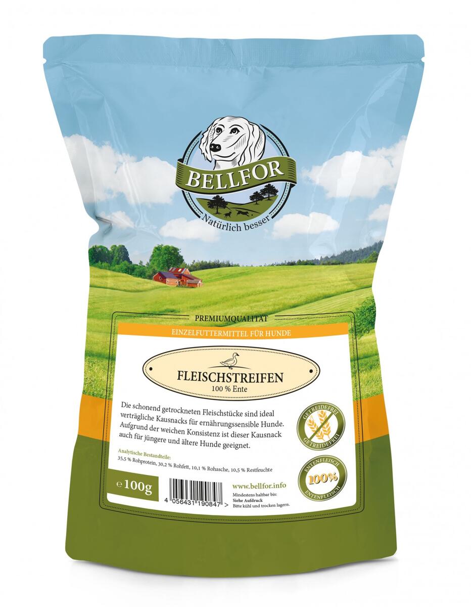 Bellfor Trockenfleisch | mit Ente | 100 g getreidefreier Hundesnack
