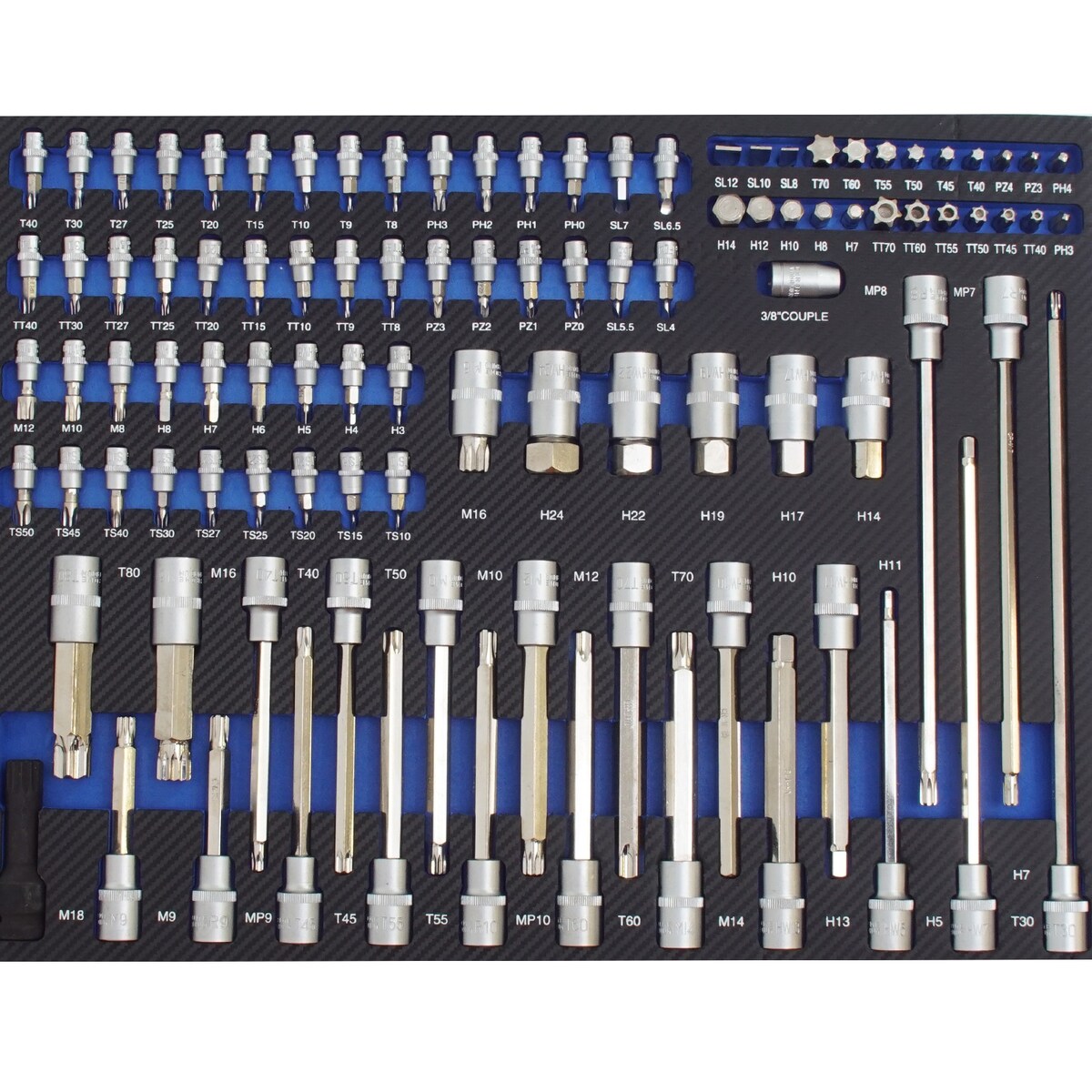 TRUTZHOLM Profi Werkstattwagen Einlage blau 102 tlg. Stecknuss Sortiment Schaum 520x400mm
