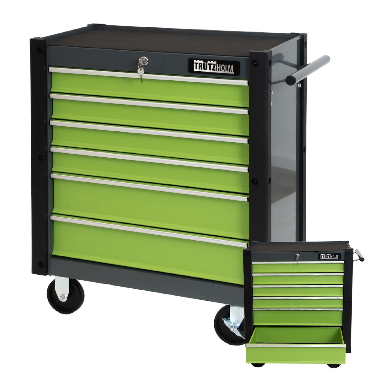TRUTZHOLM Werkstattwagen "Trutzi" abschließbar 6 Schubladen 78 x 64 cm Kantenschutzleisten Rollcontainer grün