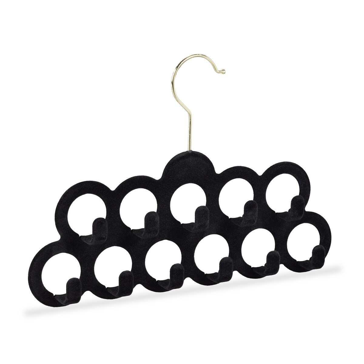 Relaxdays Schalhalter, Tücher, Krawatten, Gürtel, Haken 360° drehbar, rutschfest, 11 Löcher, Samt Tuchhalter, schwarz