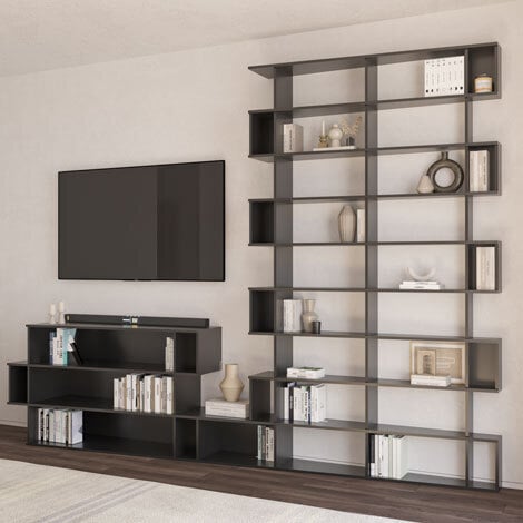 TV-Wand Brixi - MDF Graphitschwarz, Schwarz matt - 3D-konfigurierbar