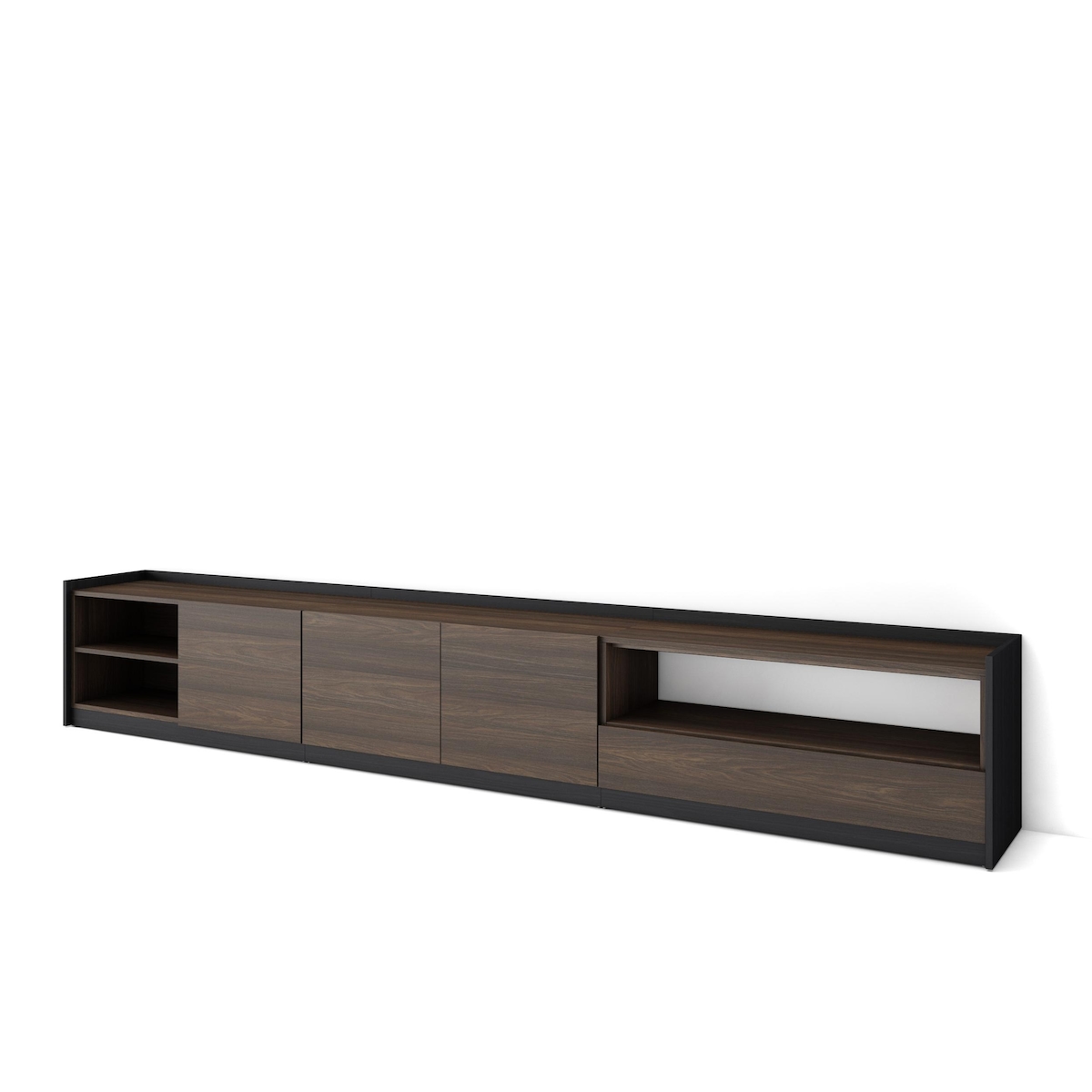 TV-Schrank, Lowboard, 310x37x50cm, Für TV-Geräte bis zu 80", Fernsehtisch, Dunkler Eiche und Schwarz