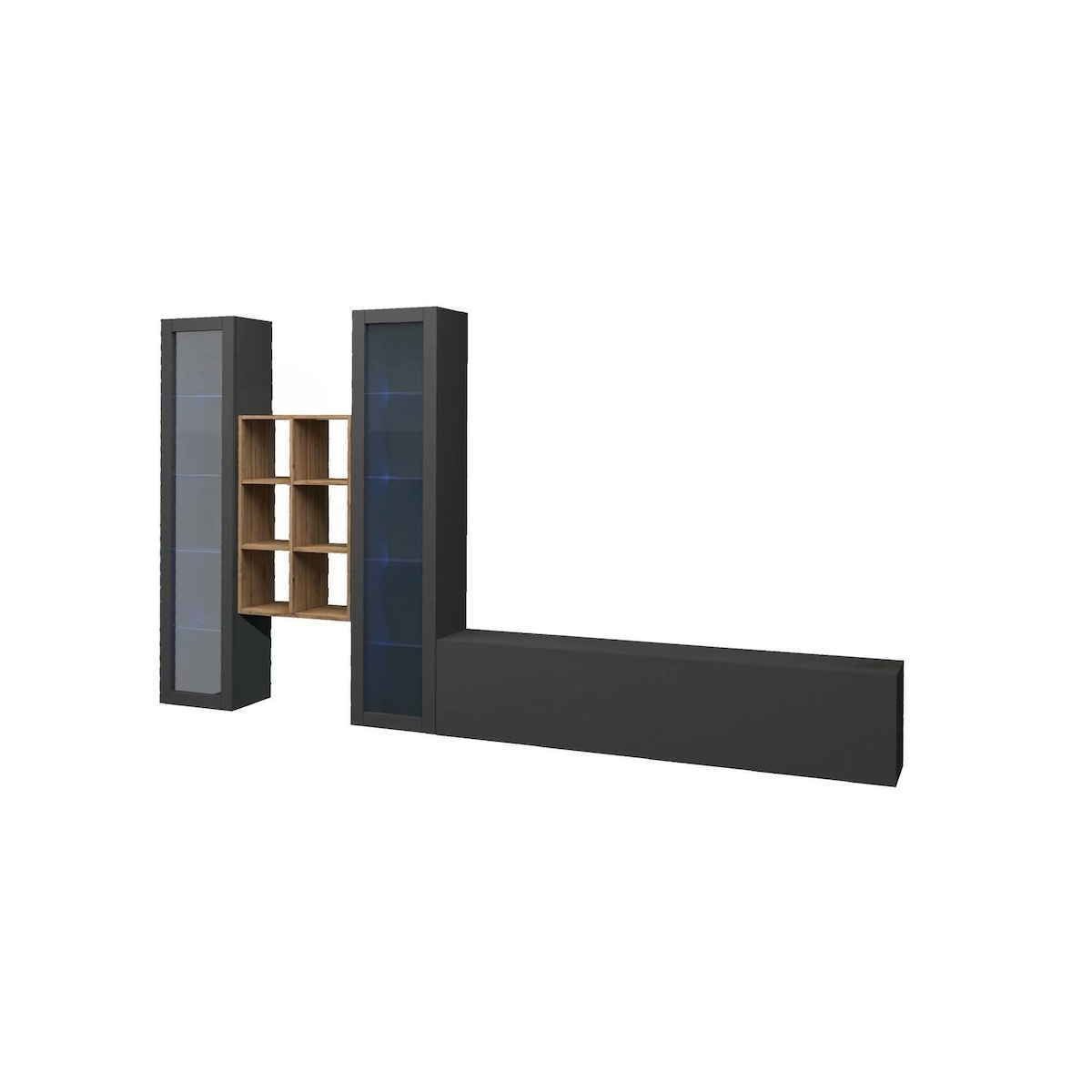 Furnitech Wohnwand Wohnzimmer - Wohnzimmer Möbel mit LED Blau - Hängend Wohnwand Modern - Regale und TV Schrank (AN105-21BS-HGM8 1C)