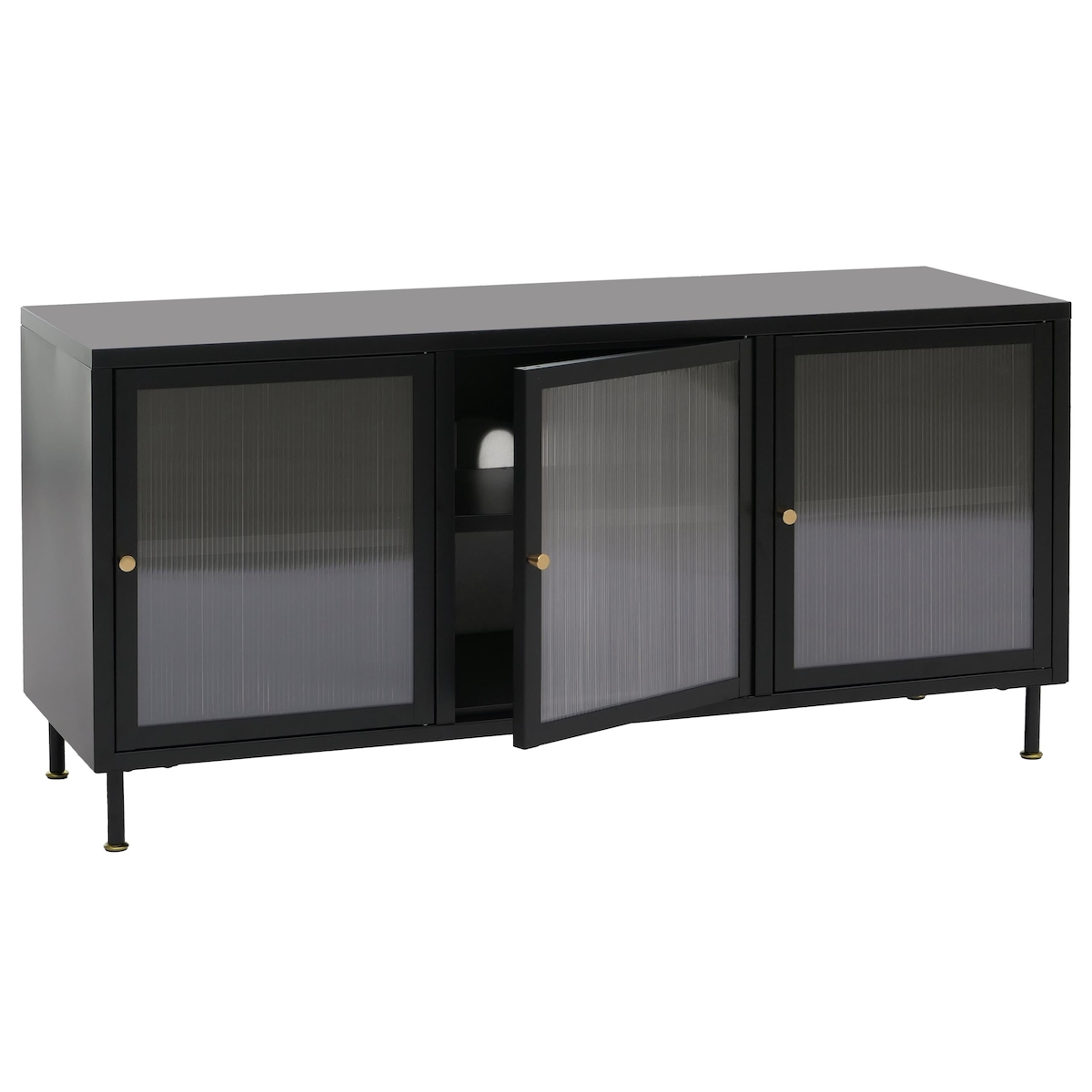 Mendler TV-Rack HWC-O87, Lowboard TV-Schrank Sideboard Türen Staufächer Industrial Metall Schilfglas 58x120x40cm ~ schwarz