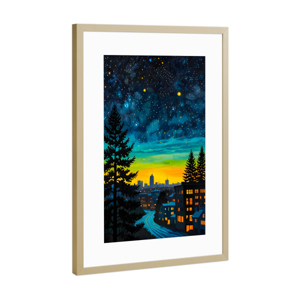 Poster mit Rahmen Gold "Urban Twilight Glow" artboxONE - Natur